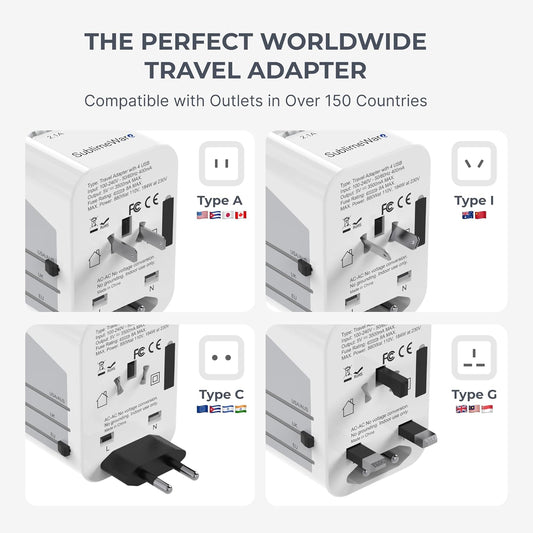 International Power Adapter Travel Plug - 4 USB Ports Universal Work for 150 Countries - 120 Volt Adapter - Adapter Type C Type a Type G Type I F for UK Japan China Eu Europe European by