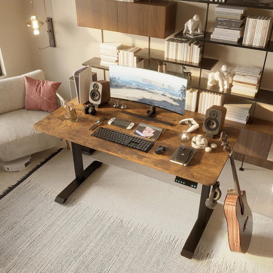 Electric Standing Desk,55X 24 Inches Height Adjustable, Ergonomic Home Office Sit Stand up Desk with Memory Preset Controller (Black Frame/Rustic Brown Top)